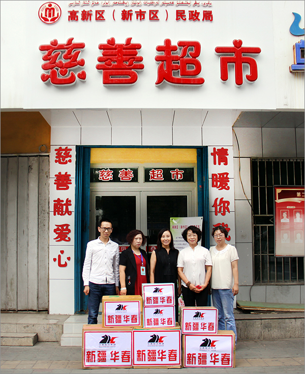 在新疆日漸臨近的寒冷氣候到來之前,新疆華春投資集團副總裁兼工會主席高青攜企業文化中心管理人員一行,代表華春團隊于8月18日將裝滿7箱的羽絨服、毛衣、風衣等衣物,送到烏魯木齊高新區(新市區)慈善超市,由其送與需要救助的社會困難群眾、弱勢群體手中,使他們感受到社會的溫曖。高新區(新市區)民政局辦公室武主任和慈善超市的工作人員,對華春集團關注民生奉獻愛心的善舉表示誠摯的感謝。