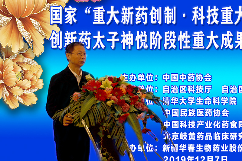 首先,受中國工程院院士、中國中藥協會黃潞琦會長委托,中國中藥協會常務副會長劉張林先生致辭,他說,歷經17年的艱辛努力,在國家衛計委、科技部、國家藥監局、新疆維吾爾自治區人民政府高度重視與大力支持下,由清華大學、新疆華春生物藥業股份有限公司共同研發的中國原創性抗抑郁中藥創新藥太子神悅順利完成三期臨床研究總結,結果顯示,太子神悅膠囊的有效率為75.14%,與經典化學藥氟西汀相當,而在安全性以及癥候改善方面太子神悅具有明顯優勢,充分體現了中醫藥在精神神經疾病領域的特色與生命力。能夠取得如此成果,真是可喜可賀!抑郁癥已經成為全球致殘率第一的重大疾患,并已超過心腦血管病成為全球第二大疾病。太子神悅階段性重大成果是落實習近平總書記關于“守正創新”發展中醫藥事業重要指示的代表性進展,填補了中國抗抑郁中藥原創性新藥創制的空白,必將對新疆中醫藥產業以及區域優勢中藥材種植業的快速發展產生重大影響,同時對于推動中醫藥現代化也將具有里程碑意義!