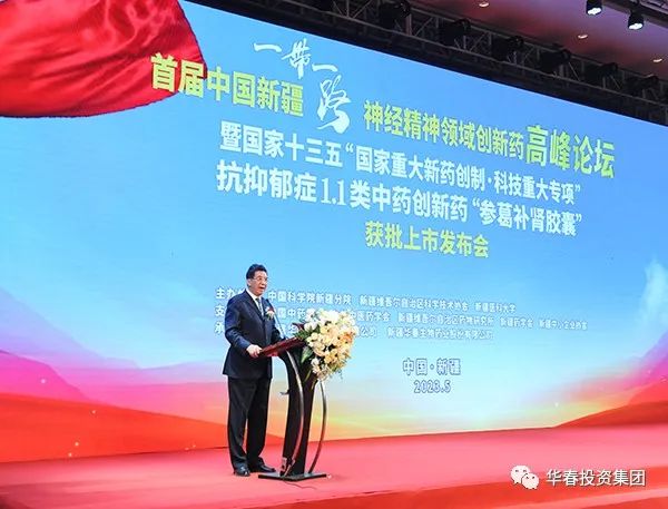 在春末夏初古絲綢之路上的重鎮(zhèn)新疆首府烏魯木齊市,萬物競秀,生機(jī)盎然。在“一帶一路”倡議提出10周年之際,5月26日,由中國科學(xué)院新疆分院、新疆科學(xué)技術(shù)協(xié)會(huì)和新疆醫(yī)科大學(xué)聯(lián)合主辦的首屆中國新疆“一帶一路”神經(jīng)精神領(lǐng)域創(chuàng)新藥高峰論壇暨國家十三五“國家重大新藥創(chuàng)制·科技重大專項(xiàng)”抗抑郁癥1.1類中藥創(chuàng)新藥“參葛補(bǔ)腎膠囊”獲批上市發(fā)布會(huì),于希爾頓酒店隆重舉辦。