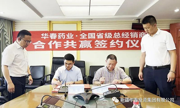 新疆華春生物藥業股份有限公司(簡稱華春生物藥業)與第二批全國省級總經銷商合作協議簽署儀式,于8月24日在新疆華春投資集團舉行。新疆華春投資集團董事局主席兼總裁、華春生物藥業董事長李成功先生,分別與江蘇龘龍醫藥科技有限公司研發負責人張永昌(江蘇省代)、北京麥爾信康科技發展有限公司總經理王慶進(北京省代)、河北思平生物醫藥科技有限公司總經理高春雨(河北省代),簽訂了《“參葛補腎膠囊”推廣服務協議暨省級總經銷協議》。華春生物藥業相關技術與管理人員參加簽署儀式。