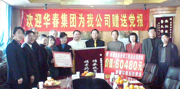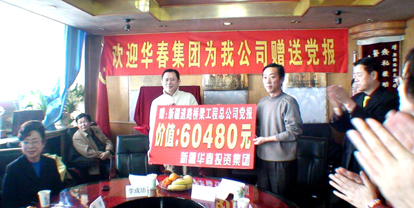 新疆華春投資集團(tuán)董事局主席兼總裁李成功先生向道路橋梁工程總公司贈(zèng)送價(jià)值60480元的黨報(bào)