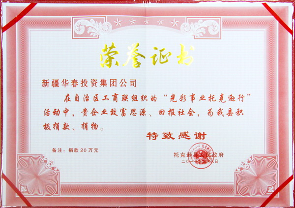 此次捐贈(zèng)款項(xiàng)用于解決托克遜縣農(nóng)牧民困難群眾生產(chǎn)資金周轉(zhuǎn)和貧困家庭子女上學(xué)等問題。華春集團(tuán)以企業(yè)的社會(huì)責(zé)任感,歷來重視扶貧事業(yè),積極參與光彩事業(yè),回饋社會(huì),為構(gòu)建和諧新疆做出了民營(yíng)企業(yè)的一份貢獻(xiàn)。